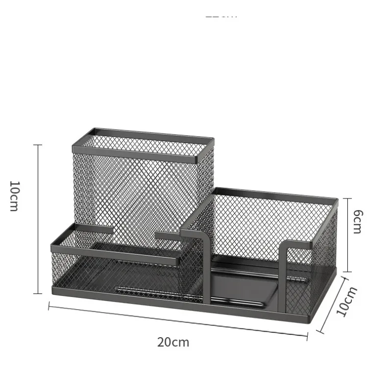 1pcs 3 Compartments Mesh Desk Organizer Office Supplies Caddy with Pencil Holder and Storage Baskets for Desktop Accessories
