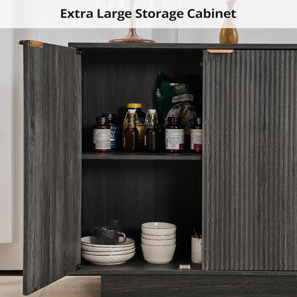 - 【Elegant Fluted Design】The modern sideboard features delicate vertical stripes on the doors, paired with sleek gold handles. This timeless design blends perfectly with contemporary, farmhouse or mid-century decor, enhancing the beauty of your dining room, kitchen or living space.