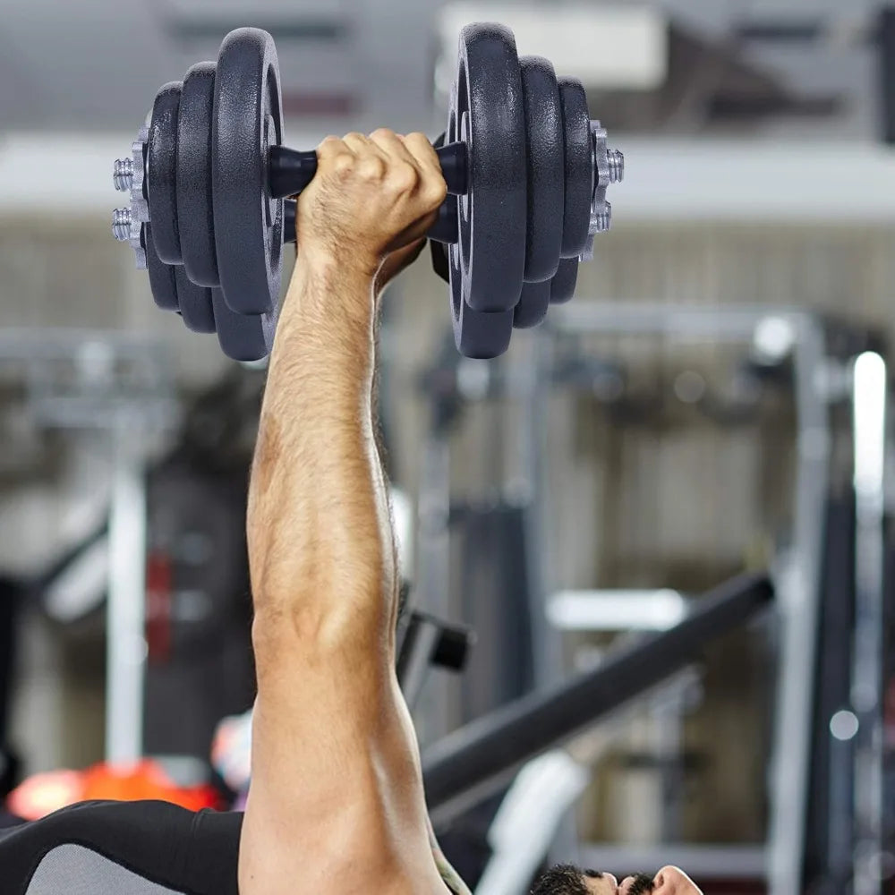 This product is a versatile 2-in-1 metal dumbbell and barbell weight set, designed with an anti-rust finish for a sleek and shiny appearance. It includes a connecting bar that can be attached to the dumbbells to convert them into a barbell, offering a variety of exercise options. The set also features adjustable weight plates, allowing you to customize the weight to suit your fitness goals, eliminating the need to purchase multiple sets. The comprehensive exercise set is perfect for a full-body workout, with the dumbbells targeting arm muscles and the barbell setup ideal for exercises like deadlifts and squats. This product is not only great for improving overall health and promoting weight loss but also for strengthening the upper body, core, and lower body muscles. The adjustable design makes it convenient for home workouts. The weight set includes 16 plates: four 1.1 lb plates, four 2.75 lb plates, and eight 5.5 lb plates. Each dumbbell handle weighs 2.3 lbs, and the minimum weight per dumbbell without any plates is 2.3 lbs. The maximum weight, with all plates attached, is 32 lbs, allowing for increments of 1.1 lbs, 2.75 lbs, or 5.5 lbs. The barbell rod itself weighs 2 lbs, and the barbell weight can be adjusted from 2 lbs to 66 lbs. The set comes with an anti-slip design using slip-resistant Neoprene and a curve-shaped handlebar for a secure grip, enhancing coordination and safety during workouts. Additionally, a compact carry case with wheels is included for easy transportation and storage of your exercise set, saving space when not in use.