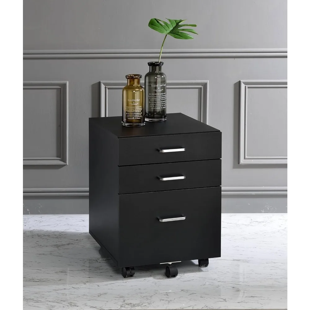 - The white cabinet body is elegant and stylish. The three drawers and large top surface meet storage needs. The four casters and sturdy handle make it more convenient to use. It is a practical file storage furniture.