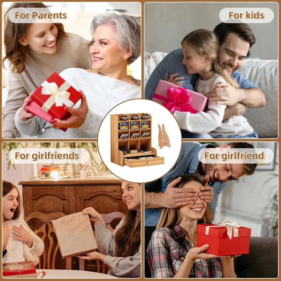 Wooden Desk Organizer Multi-Functional DIY Pen Holder for Home Office Desktop Stationary Storage with Drawer Easy Assembly Desi